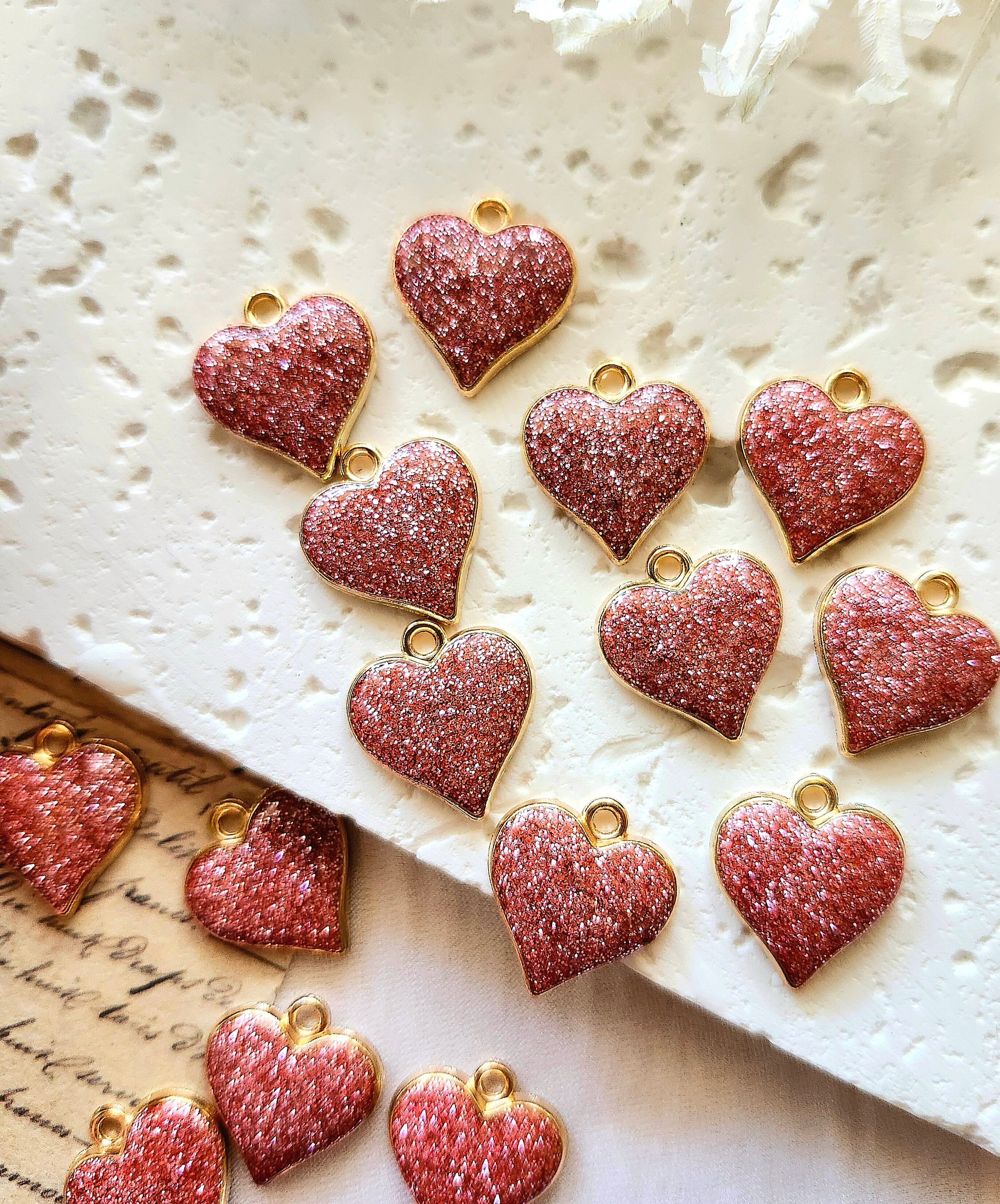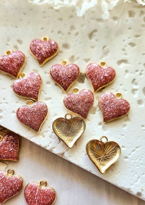 合金 グリッターハートチャーム ピンクブラウン 2個