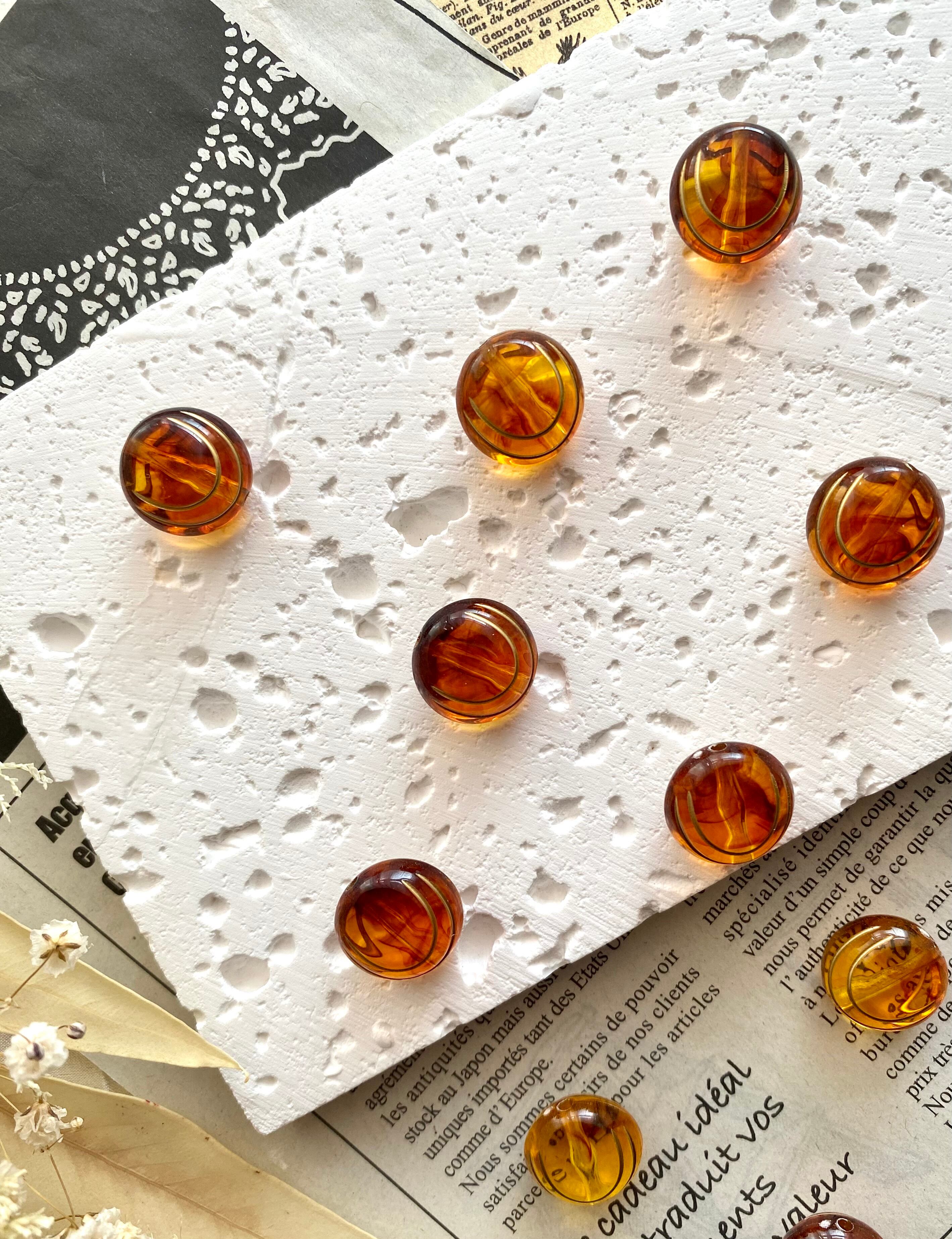 琥珀カラー アクリルビーズ ラウンド15㎜ 4個